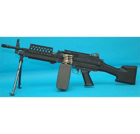 | -GP619 藏彈量: 3000 長度: 重量: 製造原料: Aluminum,PA,Steel & Die-Cast 射程: 400fps (1.4J) 波箱: Version 2 with 7mm Bearing完整波箱 摩打: G&P M120 Hi-Speed 電池: 最大可內置12v 3300mAh電池 (不包括) 包括: -鋼製金屬身 -鋼製火帽 -鋁製頂橋 -鋼製腳架 -鋼製後Sight -完整波箱連鋼製齒輪 -固定尾托 -M249 空殼5.56 子彈帶 (10發子彈) -M249 Box Magazine (3000發) (GP609) |